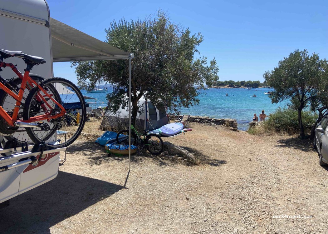 Nádherný kemp s panoramatickým stáním. Klidný, tichý, čisté moře a cena pro 2 dospělé, 2 děti a přípojku ve třetí řadě u moře (takže téměř u moře) 175kn za noc. Zaskočilo nás jen, že je to nuda kemp, ale plavky si klidně můžete nechat. Zátoka je opravdu nádherná.