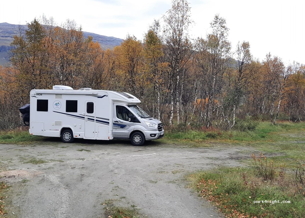 Wunderbarer Übernachtungsplatz, bei dem man auch länger bleiben kann. Zufahrt über Schotterstraße. Boden besteht größtenteils aus Gras & Schotter. Zufahrt für jedes Fahrzeug geeignet. Sehr abgeschotten, Blickdicht und durch den Bach hört man die Straße so gut wie nicht. Ideal für Hunde, meiner hat es geliebt sich hier frei zu bewegen. Es gibt einen Weg hinunter zum Bach, bei dem man wirklich schöne Fotos machen kann. Internetempfang war exzellent. Achtung: Zufahrt zum Platz ist etwa 300m vorher aus Richtung Narvik.