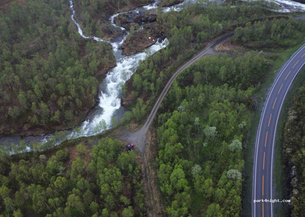 Absolutely a superb location for all sorts of campers. The access path at the E6 has moved approximately 100 meters west and is asphalt the first 50 meters. After that a descent dirt road that brings you to a flat spot close to the waterfall with place for 2 campers. 3/4G available.