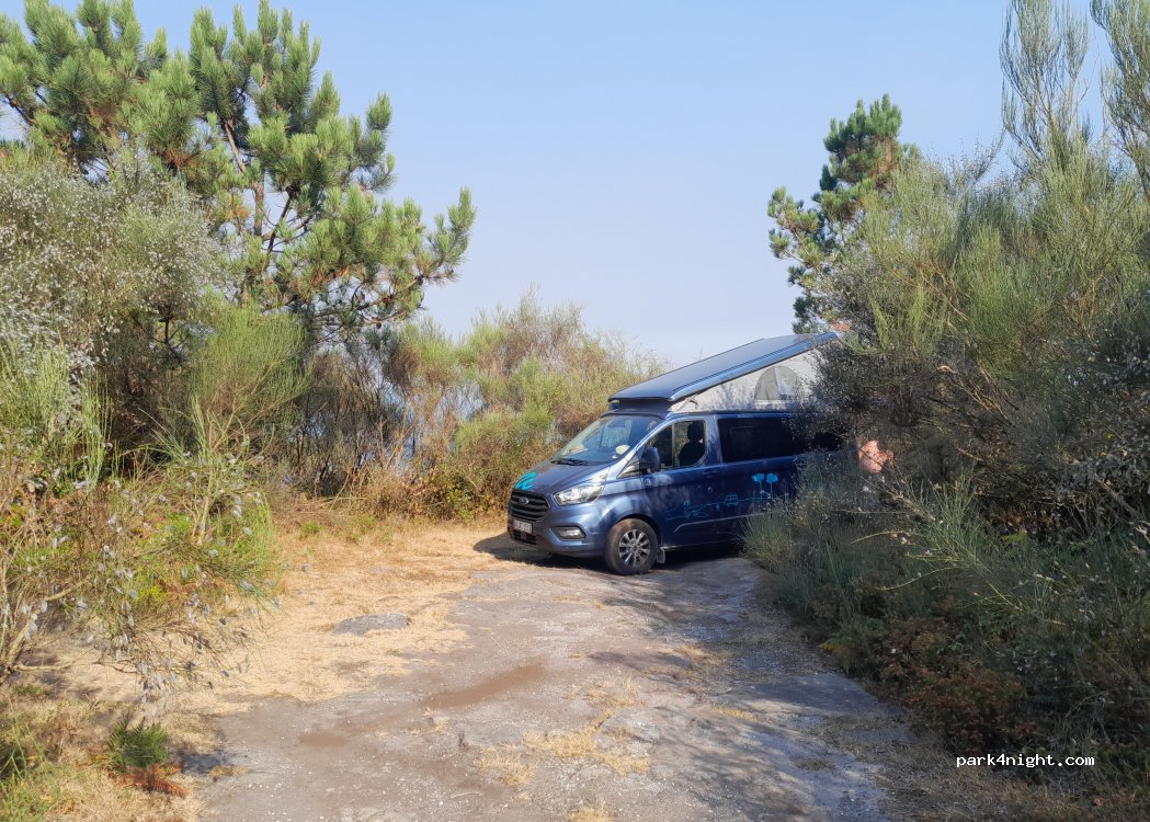 Il y a deux spots. Le 1er offre une magnifique vue mais aucun point dombre et avec 36° ce n'est pas tenable. Le 2ème a de l'ombre mais le chemin est étroit et la végétation gratte le van quand on passe. Impossible pour un camping-car par contre. Nous y étions pendant la grosse période d'incendie et je pense que c'est un peu inconscient d'avoir passé la nuit en pleine forêt et si isolé.