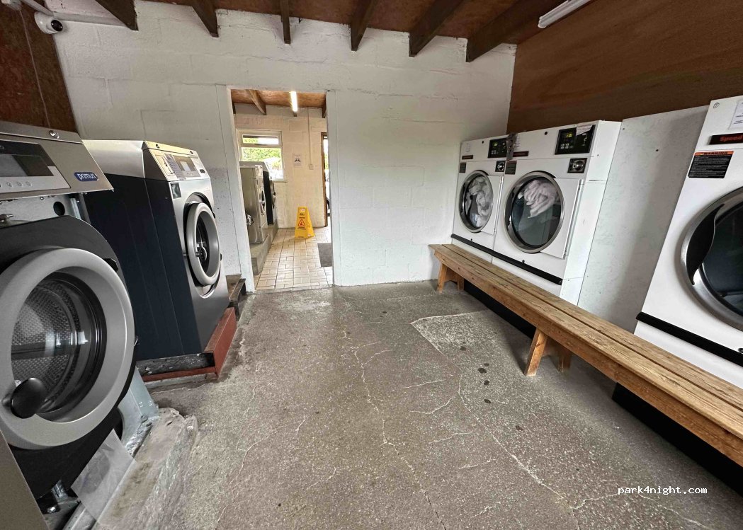 Excellent laundromat facilities on block at entrance to site, open to public. £5 large wash, £2 30 minute dry.