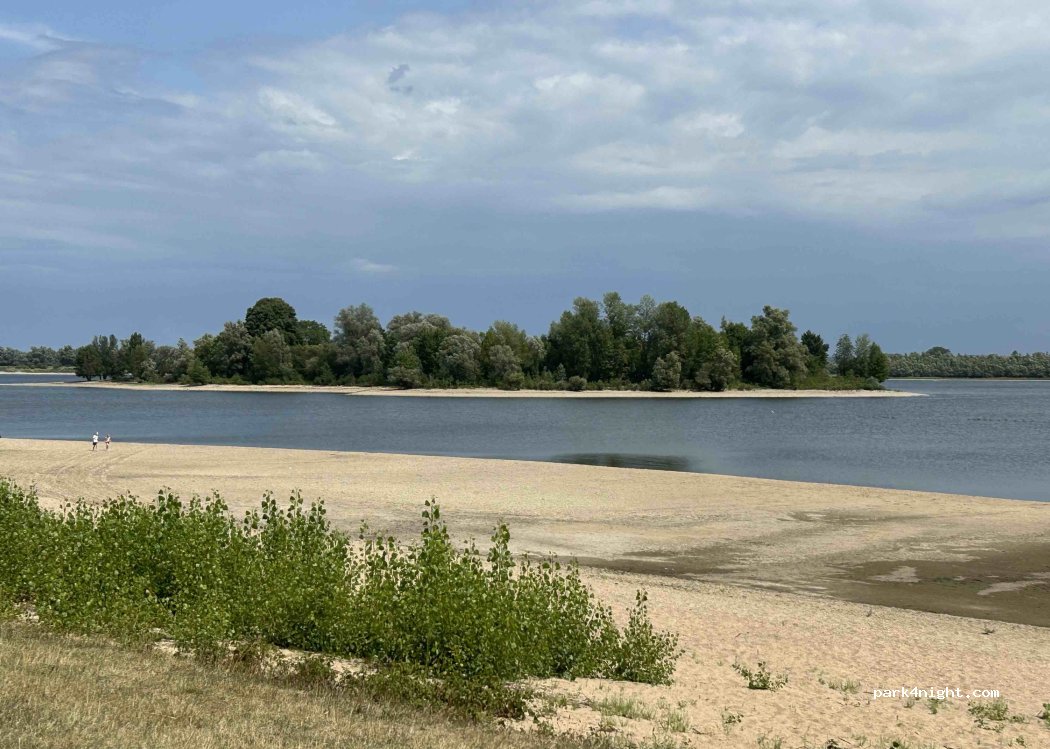 Hier zit je dichter bij het meer, zonder hek direct aan het wandel- en fietspad, maar wel zonder elektriciteit.