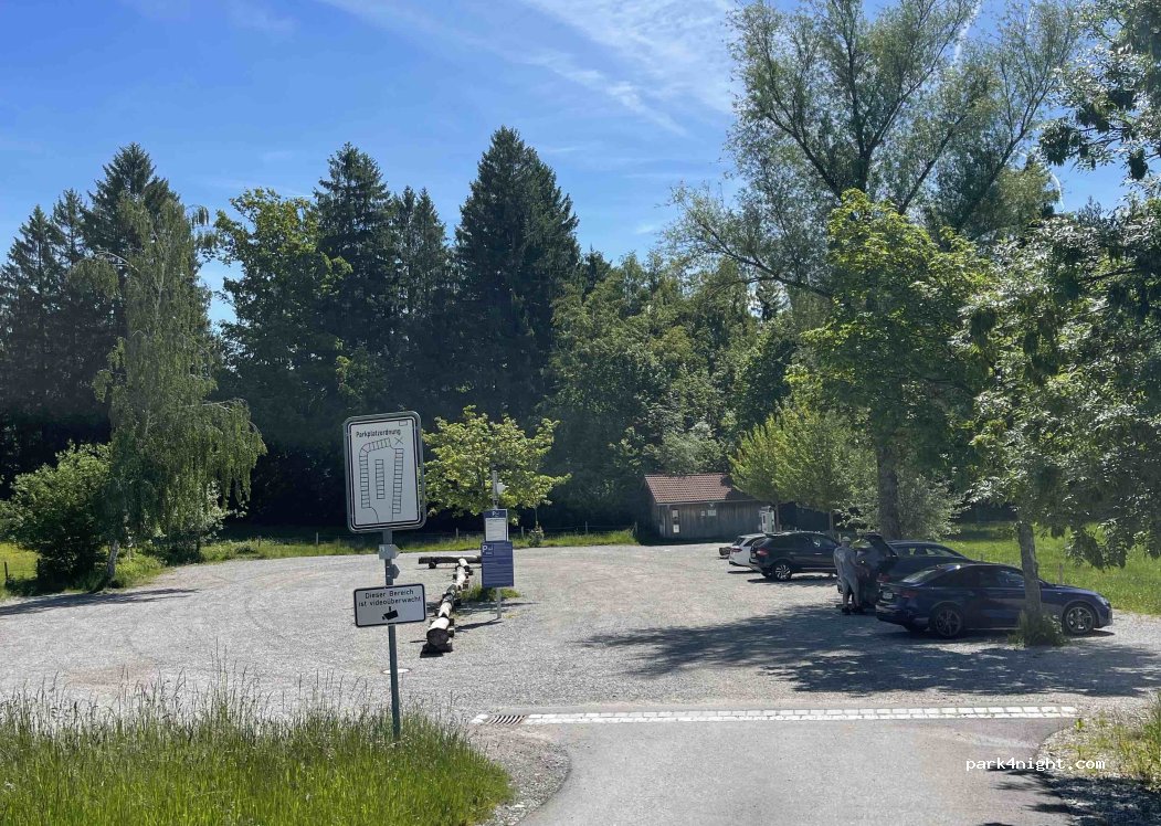 Parcheggio gratuito a pochi passi dal lago FORGGENSEE. Gratuito, ma vietato dalle 20 alle 8 ai camper e caravan. Noi abbiamo pernottato lo stesso e nessuno ci ha detto nulla. Eravamo 5 camper totali. Lago molto carino e vista fantastica.