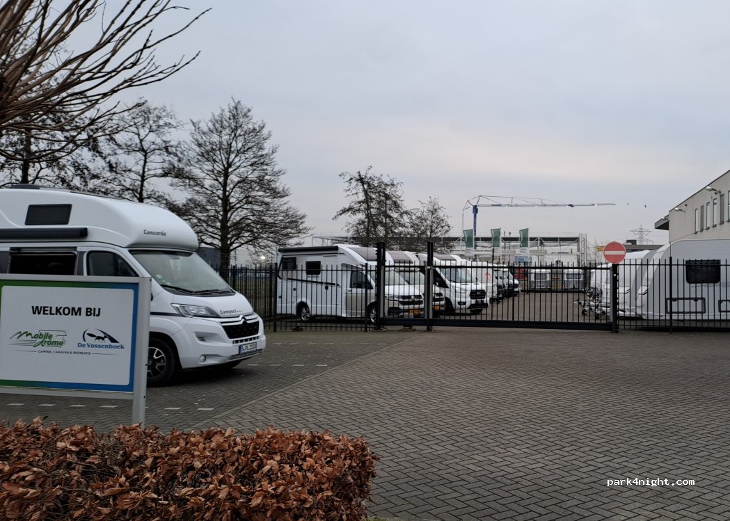 8 places de stationnement chez un concessionnaire de camping-cars (Mobildrome). Possibilité de faire le plein d'eau et d'évacuer les eaux usées. À 3 km du centre de Roosedaal. Pistes cyclables. Calme la nuit, mais bruyant dès 5 h du matin sur l'autoroute toute proche.
