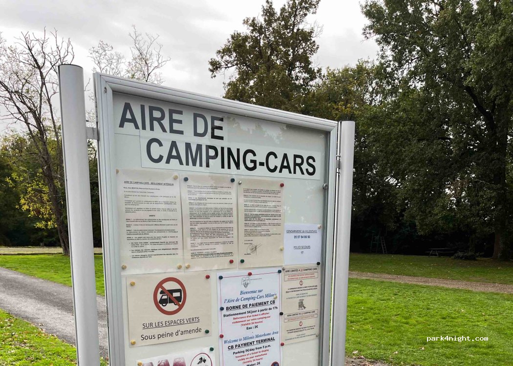 Encore une commune qui prend la « grosse tête « il y a quelques mois cette aire est passée de gratuite à 5€, puis de 5 à 10. Dommage, j’aimais bien y faire étape. Bye-bye !
