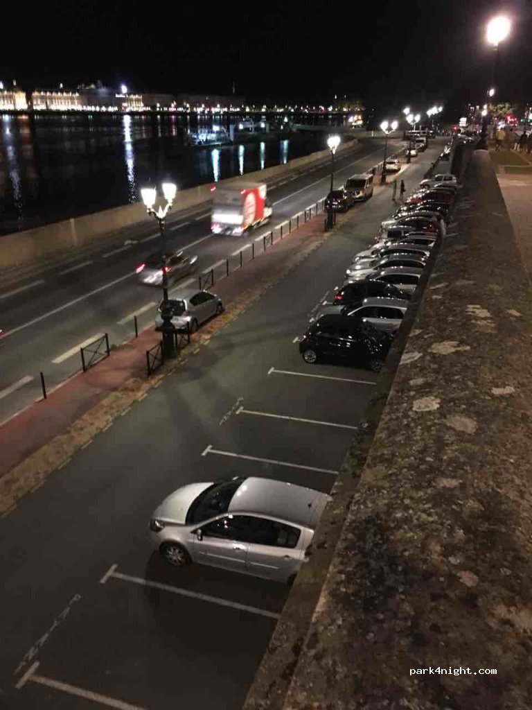 Nous nous sommes garés ici pour une nuit à Bordeaux. Gratuit 19h - 6h et festivals. Proche du centre ville, sécurisé. Nombreuses places de stationnement mais possibilité de se garer même avec le camping-car. Non recommandé pour dormir, nombreuses voitures circulant dans les environs, quartier bruyant (restaurants, clubs). Si je comprends bien le panneau, il n’est pas autorisé à y rester les samedis matins de 6h à 9h.