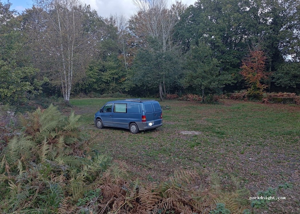 Small car park, natural area near Lake Pareloup. Quiet night and very pleasant awakening, badly sandstone the proximity of the road. Very little traffic at night