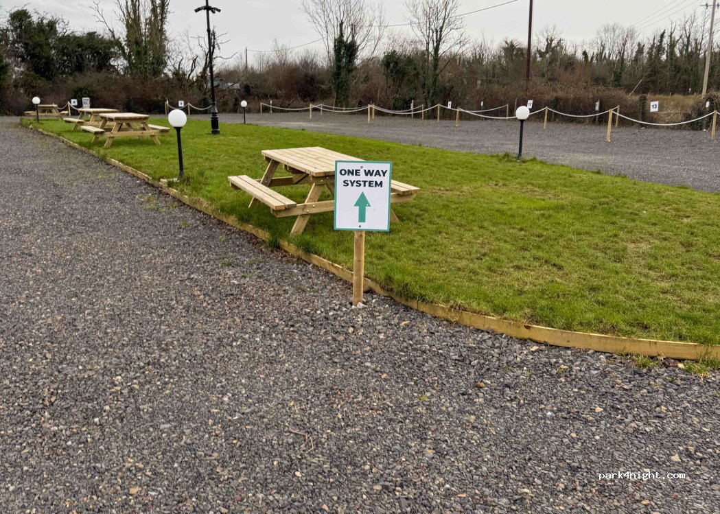 Excellent quiet spot with a restful outlook to River Shannon. €10 or €13 with power. Drive over Grey waste. Chemical waste is within the wooden enclosure next to the blue toilet block. Water tap on the side as well. Entry gate needs a code which is obtained by ringing Fergus on the number written on the office door. Thanks Fergus