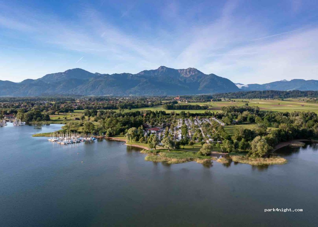 Campingplatz mit zahlreichen Stellplätzen, nur tagsüber zugänglich, jeder Stellplatz verfügt über Wasser/Abfluss/Strom. Großer Kinderspielplatz, direkter Zugang zum Chiemsee mit eigenem Kiesstrand. Keine Hunde erlaubt. Fahrzeuglänge max. 8,50m . Zelte nur für Kinder gestattet