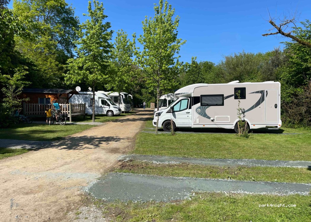 Camping muy tranquilo y barato. Con piscina, lavandería, bar y zona de juegos para los niños. Zona de ciclistas, por estar situado en la ruta del canal de Nantes-Brest. Nos quedamos dos noches muy a gusto.