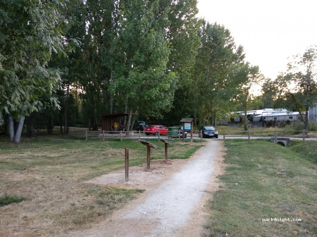 Prima plek om te zijn. Mooi grasveld met sporttoestellen. Veel schaduw. Overkapping met waterkraantje. Picknicktafels. Niet naar de muur van de fabriek kijken. Dan heb je een prachtig uitzicht. Genoeg parkeergelegenheid. Zeer rustig gebied. Ik heb hier niet overnacht maar het zou wel een prima plek zijn.
