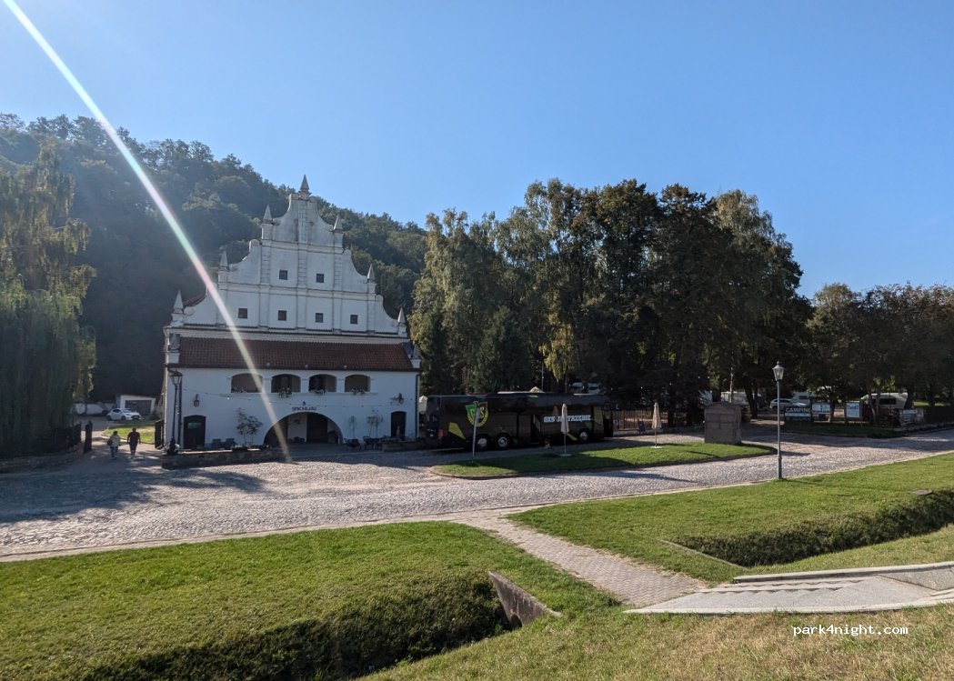 Nie za duży , bardzo fajny camping. Przemiła obsługa. Sanitariaty czyste aż pachnie. Psy mile widziane i gratis. Na pewno będziemy polecać i pewnie wrócimy. Na rynek 15 minut wolnym krokiem. Polecamy przejść się wąwozami. Po przyjeździe należy zameldować się w hotelu obok. Za kampera i dwie osoby dorosłe 100 zł za dobę.