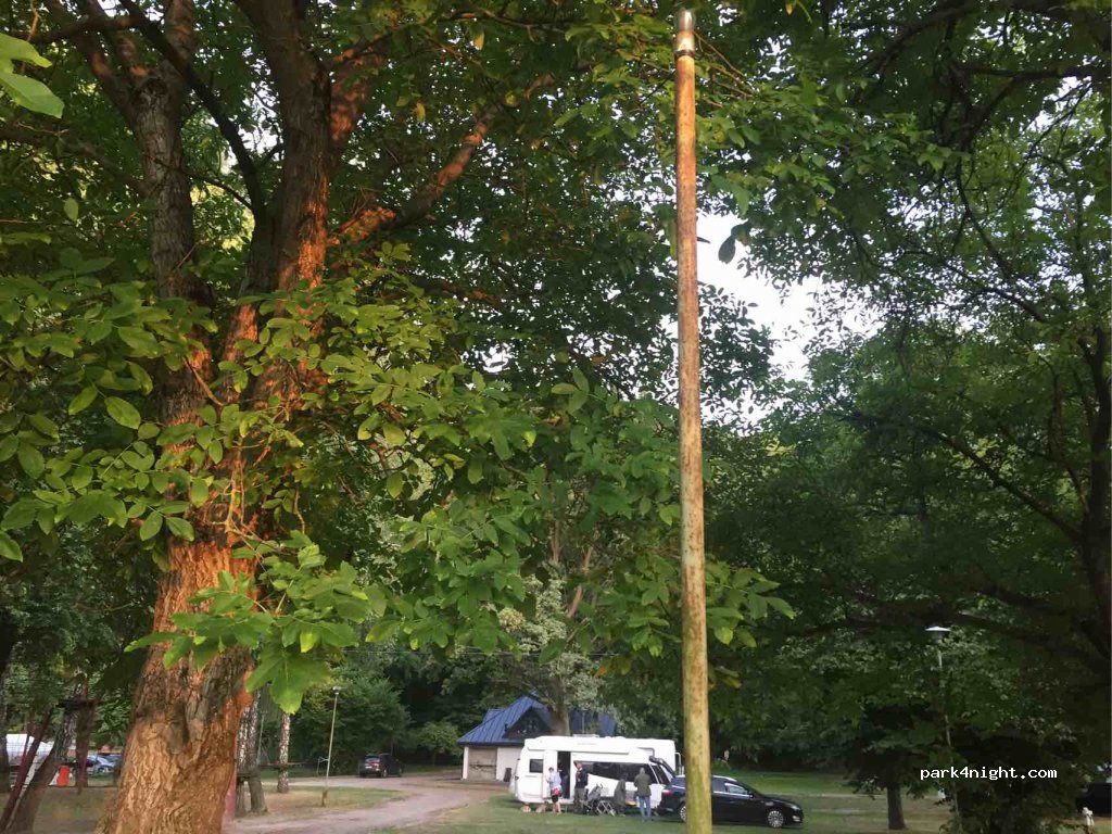 A very quiet and charming place. Toilets just refurbished, very clean. 10 minutes walk to the city center. 110 polish zloty for camper, 2person and electricity.