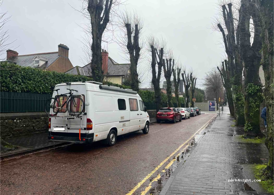 First night to stay out after purchasing our van in Cork. Well lit and we parked up alongside park railings. Arrived after 9pm and left at 9am. Felt safe on our first night,quiet area and 15 minutes walk to local pub with music,by a Centra for supplies. Easy to navigate back to Dublin M8. Good first night in our first van. Didn't check out toilets as we had all facilities on board.