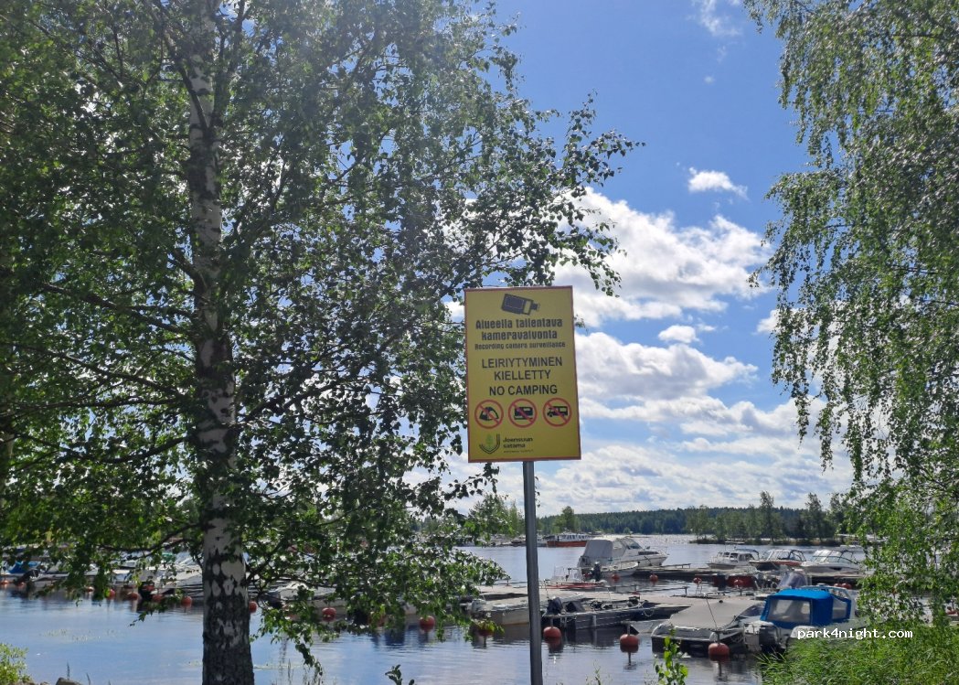 Nice place but not allowed for camping. Sign with text "No camping".