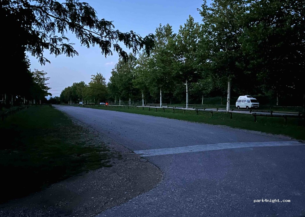 Parcheggio di un laghetto di cava con zone prendisole. Libero e vuoto al di fuori della stagione balneare. Altrimenti a pagamento dal 15.05. fino al 15.09. La toilette del lido dista circa 200 mt. Fuori stagione chiuso. Vietati i pernottamenti.