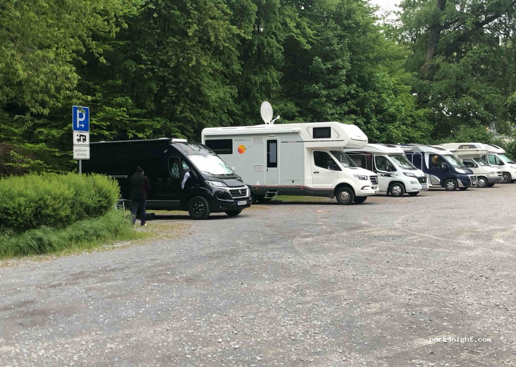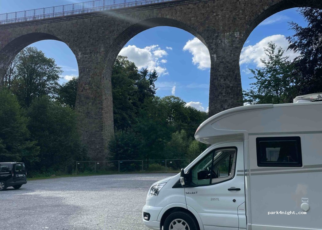 Stellplatz für insgesamt 7 Wohnmobile. 6 mit kostenlosem Strom und einer ohne. Sehr schön gelegen an einem Viadukt. Allerdings sollen von dem Viadukt des öfteren von Jugendlichen Gegenstände herunter geworfen werden. Ob es stimmt, weiß ich nicht. Wir haben jedenfalls die Parzelle direkt an dem Viadukt gemieden. Kosten 5 Euro für 24h. Sehr schön für Hundebesitzer, da direkt Wege in den Wald führen
