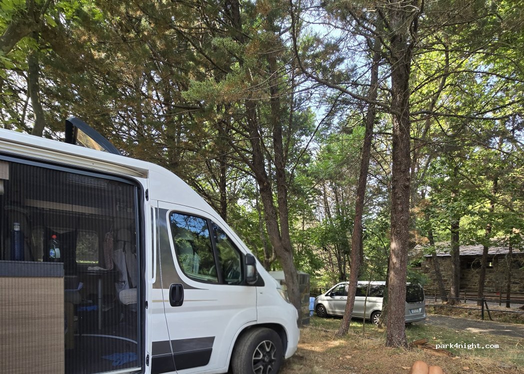 Pequeño camping con unos baños super limpios y muy tranquilo. Restaurante con buenas comidas y menús a un precio razonable. Junto a una playa fluvial muy cerca ( 2 minutos a pie) que según la hora del día da el sol en una orilla u otra. Nos he encantado tanto que a las bajada hemos vuelto. Sin problemas y casi sin maniobras con una AC de 7,5 metros. Jose, es tío genial y dispuesto. Muy baratito.