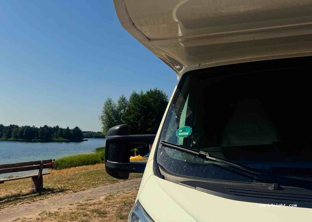 Super Platz am glasklaren See , sehr nette Betreiber , Chemie wc Entsorgung mittlerweile vorhanden ! Wir waren super zufrieden und haben spontan mit unserem 7 Meter Wohnmobil in erster Reihe am See stehen dürfen . Sanitär sehr sauber , Brötchen gibt es auf Bestellung !