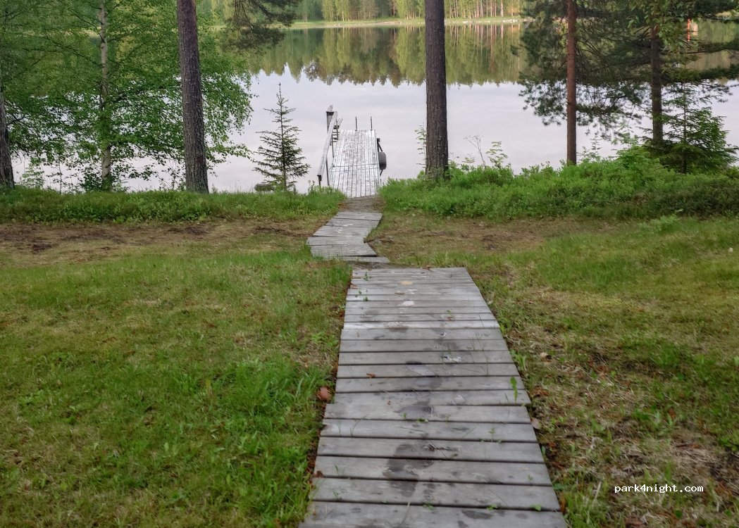Très bel emplacement sur une petite île accessible par ferry sur le très beau lac Pelinen. L accueil n’est pas vraiment sympa (peut-être du fait d’un anglais difficile). Se méfier de l’eau : parfois c’est de l’eau potable acheminée par camion (!!!) et parfois c’est de l’eau … du lac non potable donc. Du coup on n a pas fait l’appoint en eau Mi juillet c’était à peine à moitié rempli. Les emplacements de camping cars sont très espacés et assez jolis au milieu d’un grande pelouse avec quelques arbres. Quelques places donnent vue directe sur le lac . Belle plage possibilité de kayak-er. Toilettes et wc corrects grande cafetaria avec terrasse (bruyante jusqu a fermeture à 22h. Possibilité sauna mais vite full