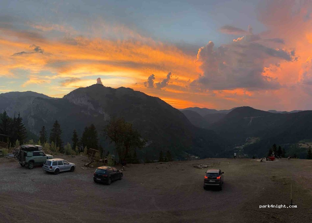 Parking en haut de la route où commencent différentes randonnées, pistes cyclables. Certaines zones plates disponibles. Le restaurant nous a permis de nous garer dans l’un de leurs cours. L’accès est bon mais c’est une montée raide jusqu’à 1400 mètres. Le restaurant est bon marché et délicieux. Superbes vues! Wifi gratuit avec restaurant