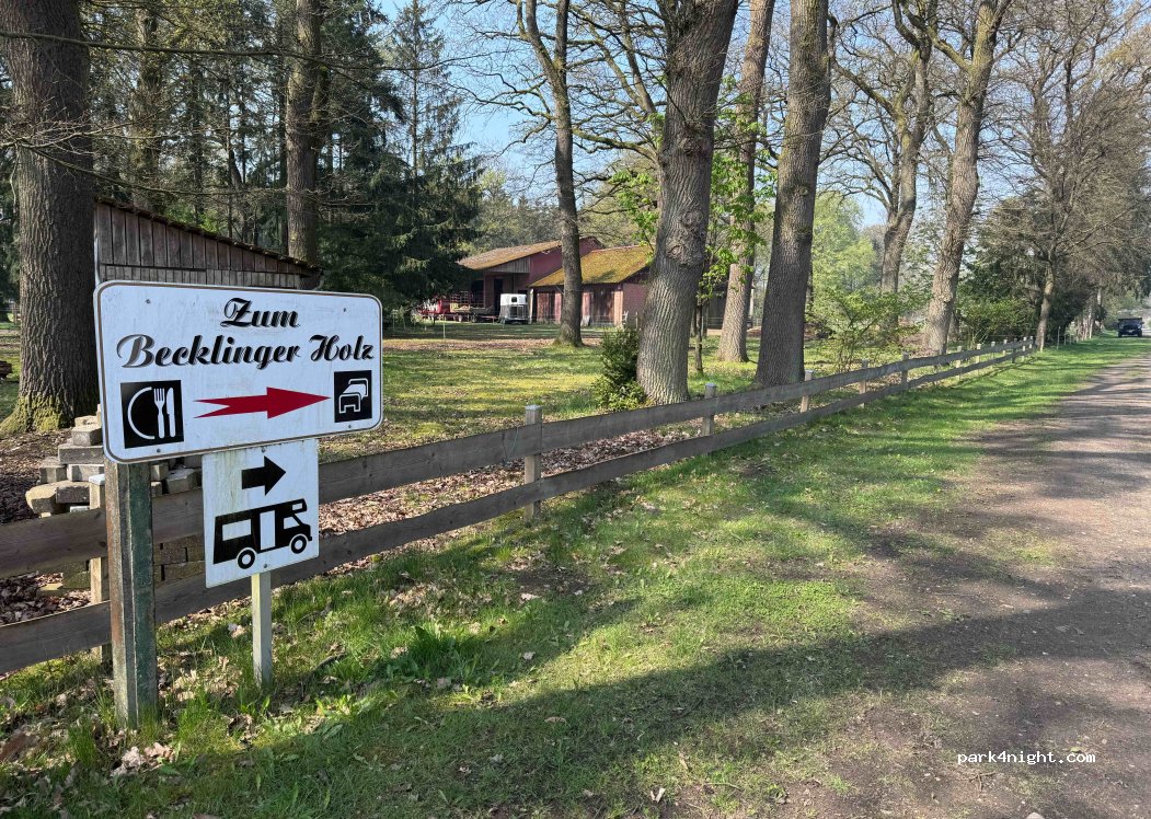 Hübsch gelegener Wohnmobilstellplatz für 17 Mobile direkt am Wald am Landgasthof Becklinger Holz. Der Stellplätze liegen einzeln und ein wenig versteckt. Untergrund geschottert, Schatten ist möglich. Strom, Waschhausnutzung (rollstuhlgerechte Dusche und Toilette), Entsorgung, WLAN im Preis enthalten. Auch für Fahrzeuge über 7.5m Länge möglich. Die Betreiberfamilie ist ausgesprochen nett und hilfsbereit. Brötchen können für den nächsten Tag in der Wirtschaft vorbestellt werden. Auch das Abendessen im Becklinger Holz ( gutbürgerliche Gasthausküche) ist durchaus zu empfehlen. Küche gibt’s bis 20:30 Uhr.