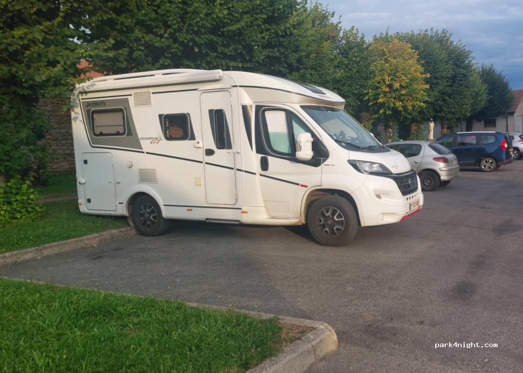 VL parking area adjoining the post office and the village hall. Public toilet within 50 meters. The location is slightly set back from the city center so rather quiet. Have experimented with daytime parking (in van) for lunch but the night one, if it is discreet, should not cause any problems to the town hall. Ideal and rather adapted to vans and vans.
