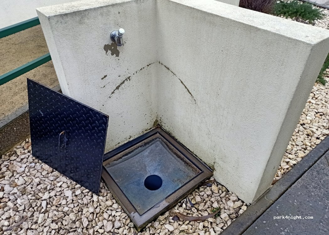 aire de service très bien. Embout pour tuyau de 3/4". Seul bémol, un seul et même robinet pour nettoyer K7 et remplir les eaux .