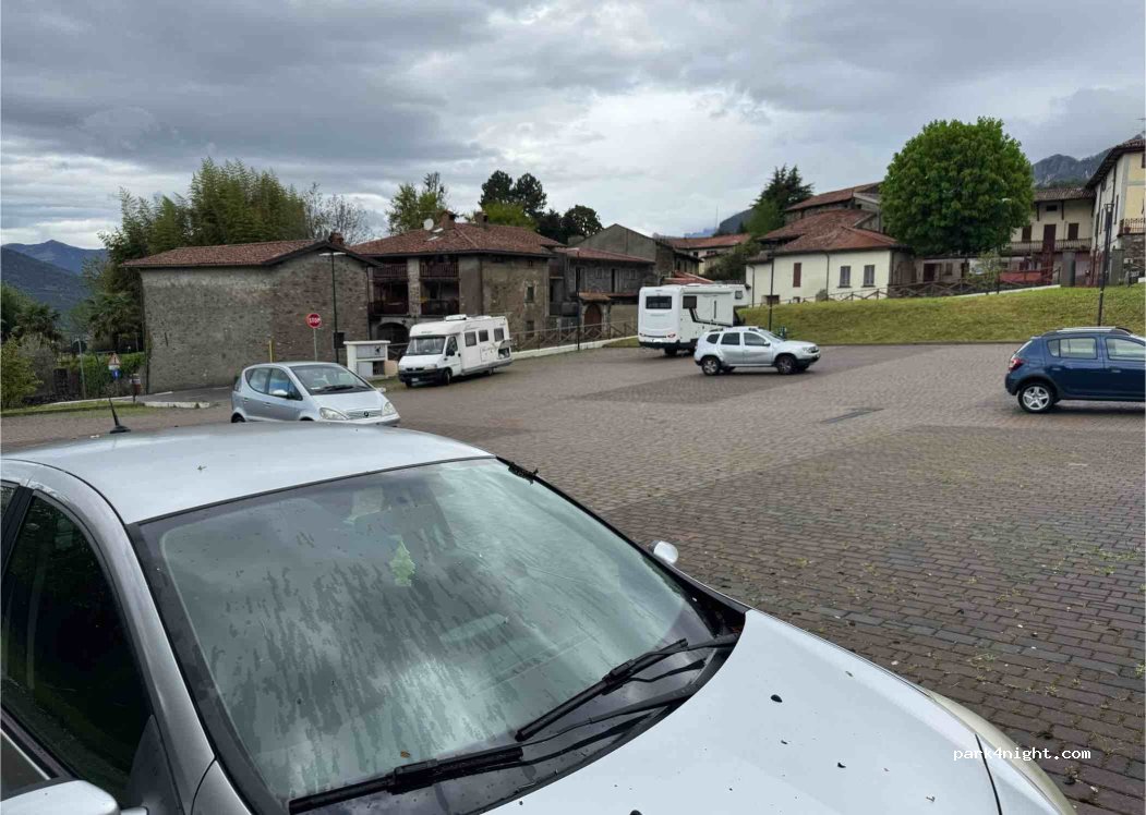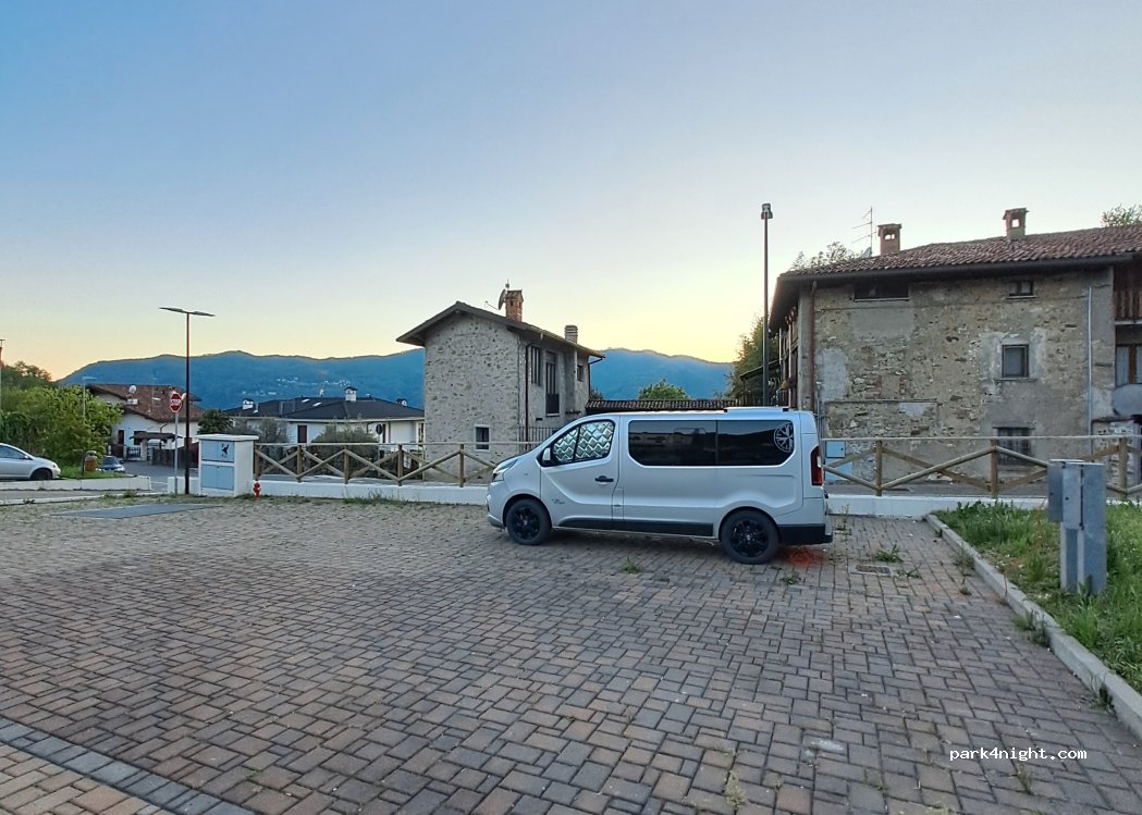 Parcheggio per camper in piccolo paese collinare, servizi carico scarico ed elettricità, ideale per una sosta notturna. Parcheggio con anche posti auto sul lato opposto, zona tranquilla, panorama da san Alessandro verso il lago e montagne. Alimentari a 5 minuti a piedi. Coop, poste e banca a 10 minuti. Escursione di 1 ora al vicino Santuario di Santa Margherita con reperti bizantini. Consigliato.