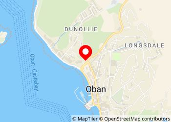 Corran Halls car park. Large car park at the bottom of the main road into Oban. Plenty of space and a short walk into town. "No sleeping in vehicles" sign.