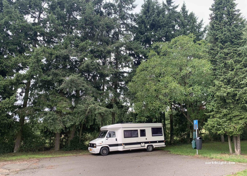 Ruime parkeerplaats met picknicktafel, kinderspeeltoestellen en vuurplaatsen. Zeer rustig gelegen. Uit het zicht van de weg. Iets ongelijk terrein, maar prima te levelen. Ligt aan wandelpad naar bos. Kwam nog een camper later op de avond. 1 nacht gestaan.