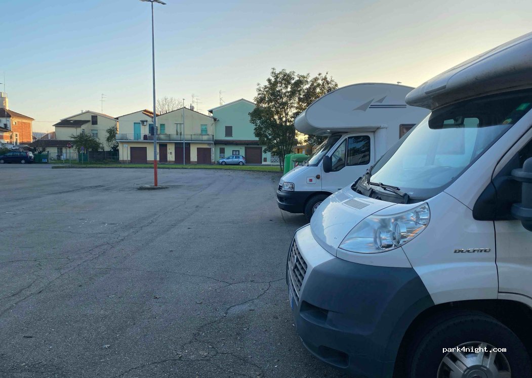 Idyllic little farm with many different animals (ponies, dogs, cats, chickens, rabbits, bees, insects of all kinds...) and a very nice host who speaks German and Englisch, has lots of good tips for the area and his mom, who likes to speak in Italian and bring apricots or blackberries. There is a mini pool to cool off in and you can rend bikes and rickshaw. The bathroom is very modern and clean. By the nearby river there is a nice beer garden with delicious foccacia. There are various small specialties to buy, such as eggs, honey, jam, wine, vinegar and olive oil. A trip to Mantua is recommended and it is half an hour from Lake Garda or Verona.You park in the field, little shade for the summer, sometimes music coming from the restaurant on the river.