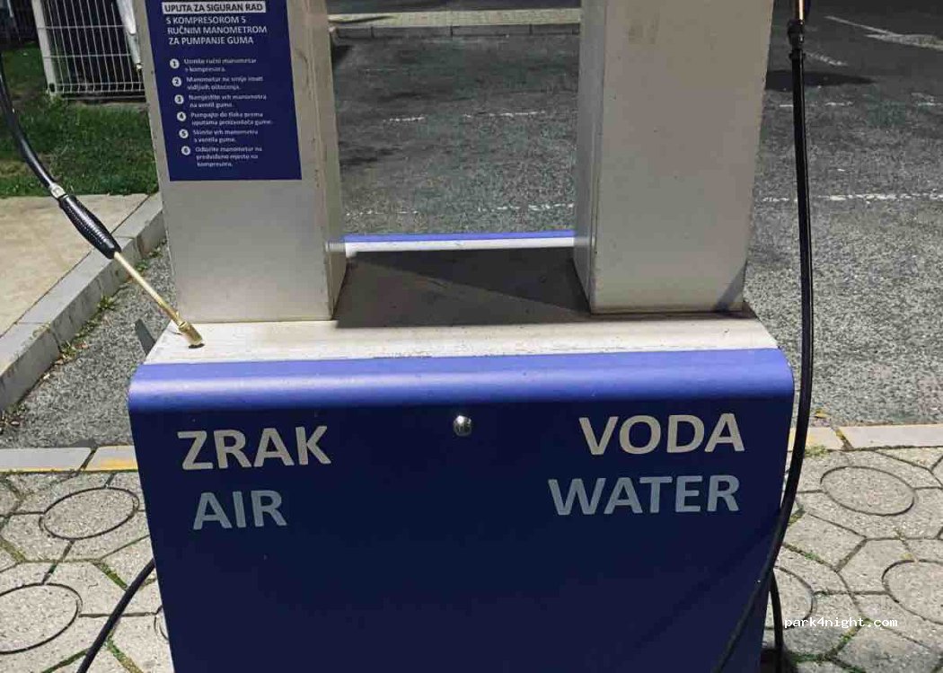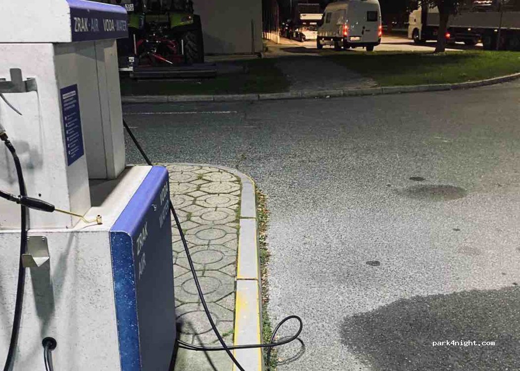 To pierwszy parking po przekroczeniu granicy, mimo że blisko ulicy jest cicho i spokojnie. Można za darmo zatankować wodę i skorzystać z toalety. My zatrzymaliśmy się dwukrotnie na nocleg i za każdym razem było spokojnie.