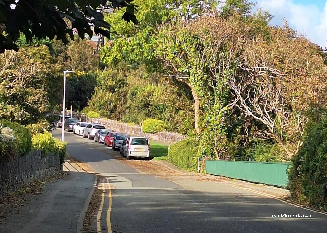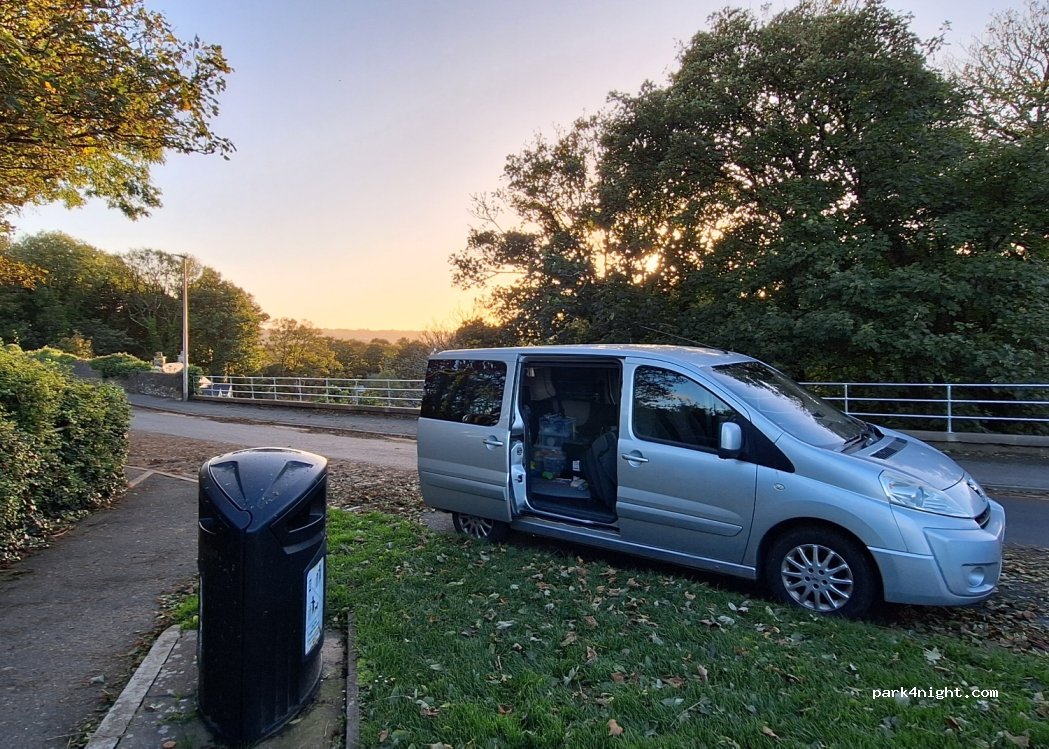 Great spot, IF you can get the last few, bottom flatish spaces. Very quiet, no problems, has litter bin. Camber at the start of the road is ferocious but the very first couple of space are OK. Sign does however say No Motorcaravans, whatever they are. I'd recommend smaller vans, VW T5 size.