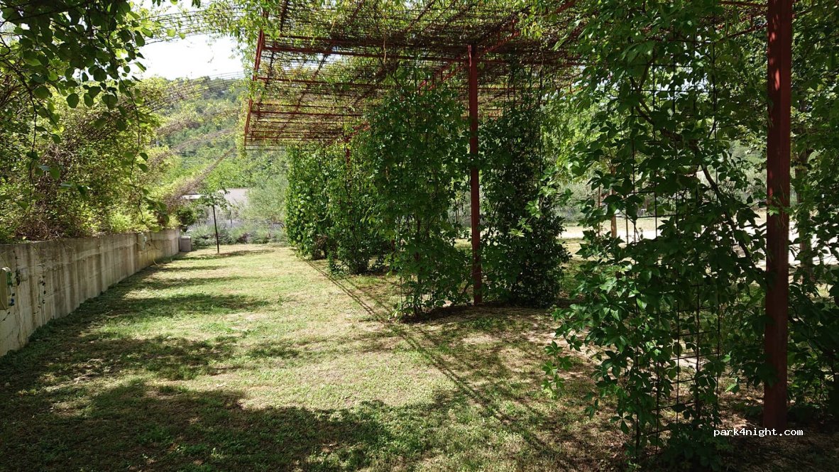 Emplacement ombragé, sanitaire très propre, possibilité de faire une machine pour 3 euros. 25 euros la nuit pour un fourgon aménagé avec deux personnes et un chien (électricité et eau comprise) . Possibilité de déguster de l’huile d’olive avant de l’acheter ainsi que du vin blanc ou rouge. Vente aussi d’olives. Proche de la route mais au calme la nuit car peu de passage. Cascades à 10 minutes.
