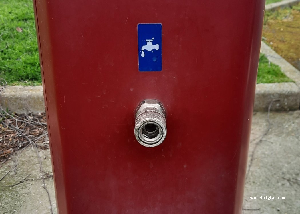 embout très spécifique, nous n'avons pas pu faire le plein d'eau (même l'autre camping cariste ne l'avait pas).... nuit au calme, distributeur de pizzas pas loin, ça dépanne (quand on n'a plus d'eau)