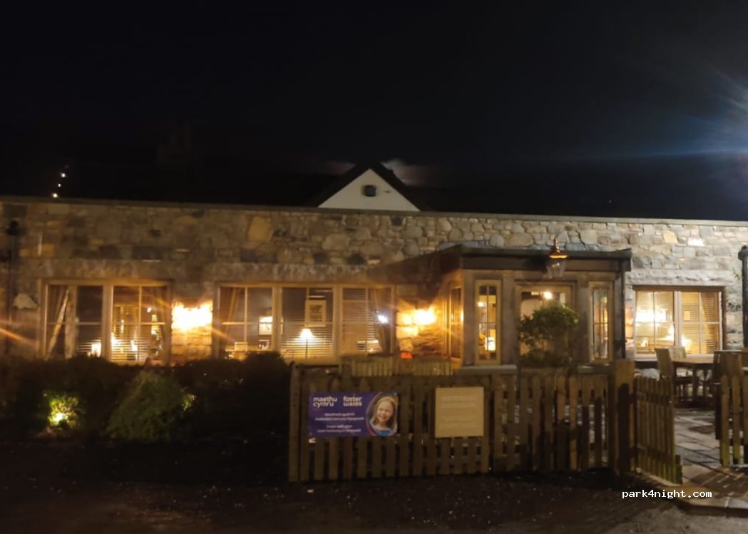 Spent the day at Nefyn beach and decided to check this pub out. Had a meal and asked if we could stay overnight in our camper, no problems and the WiFi even worked that far across the car park. Peaceful night and only van there. Woke up to sun rising over the mountain. Meals very reasonable and filling.