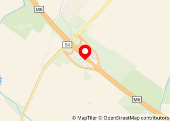 Motorway service area with toilets and drinking water on the outside of the toilet block.