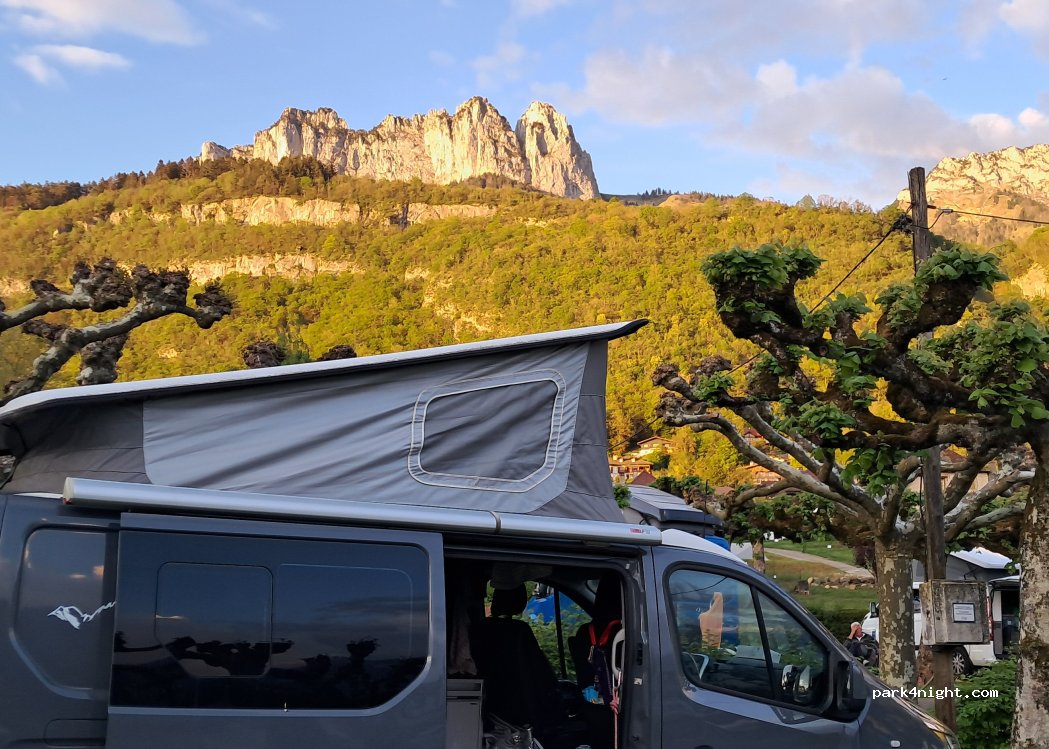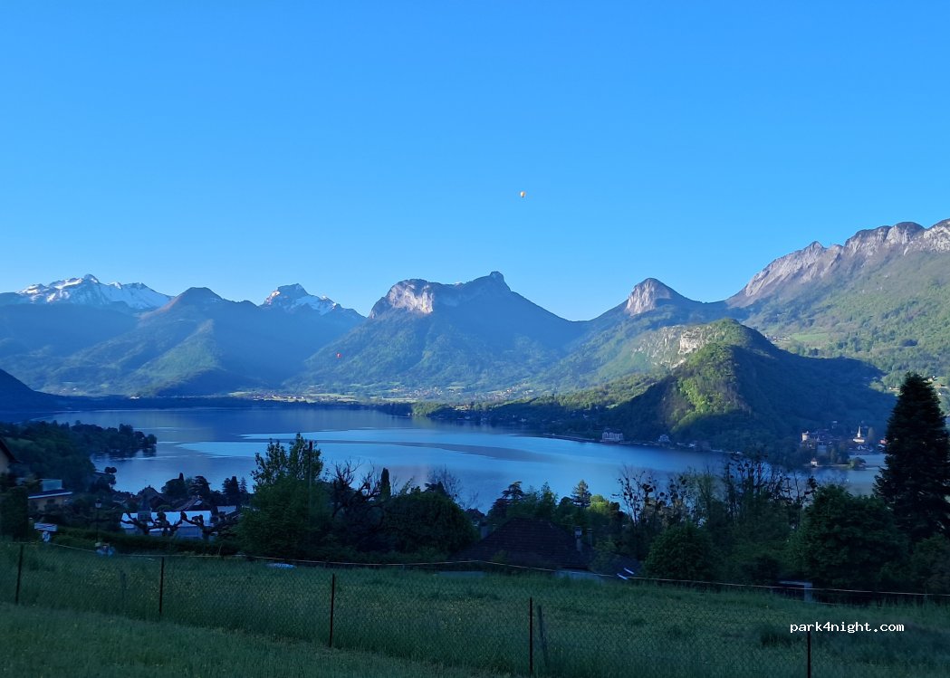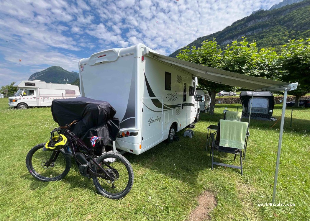 Camping l'Horizon. No emptying possible but fairly calm with a view of Lake Annecy. Friendly owners and unlimited hot showers !! ;). Laundry 500 m from the campsite