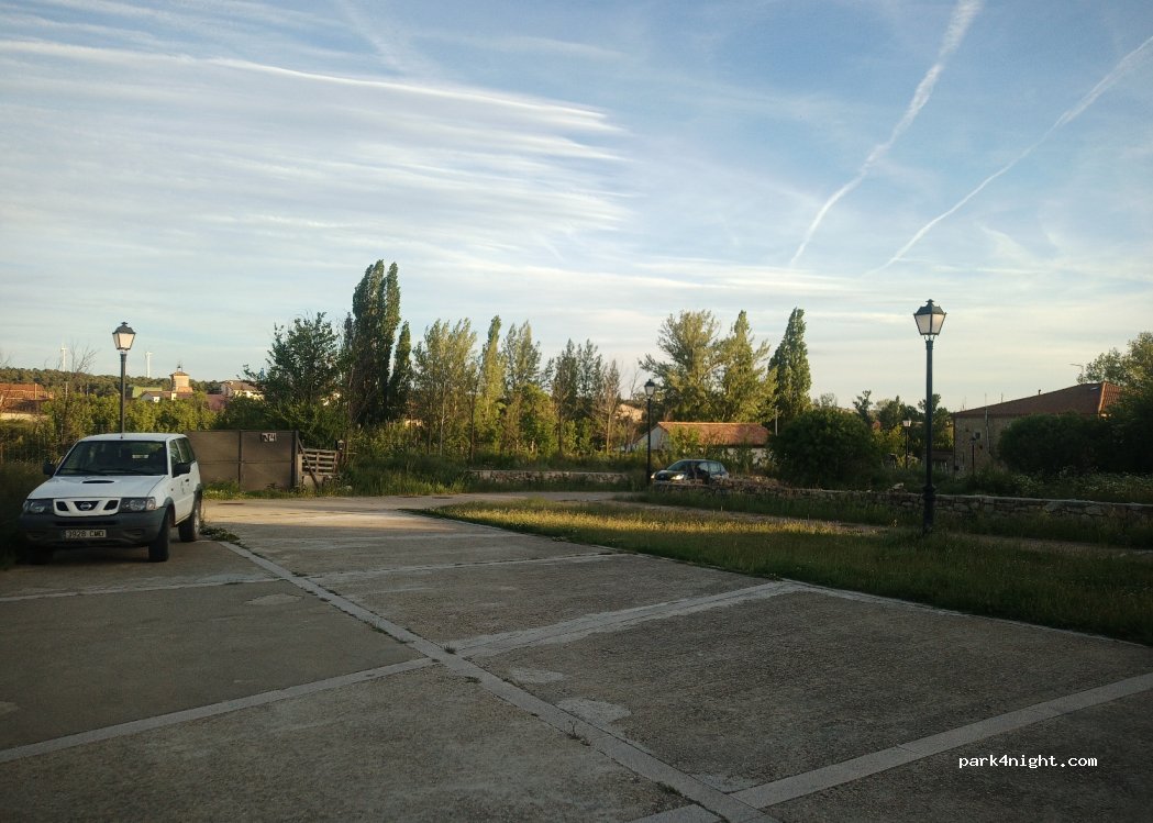 Tranquilo y apartado de la carretera . Luz de las farolas toda la noche. Cobertura 4G. Sin servicios y con cubos de basura lejos del lugar.