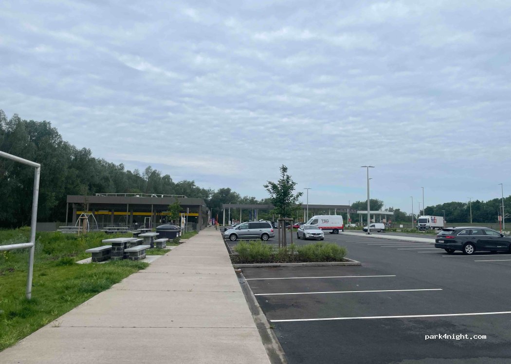 Parkeren overdag. Tankstation en restaurant, niet te luidruchtig.