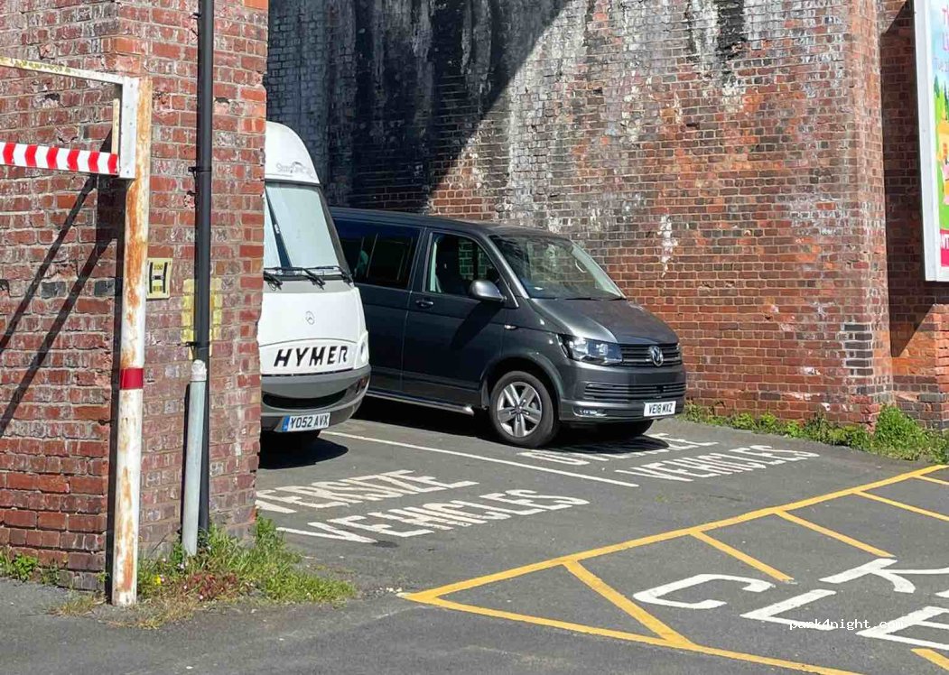 We found it very noisy with groups of students walking home from night out until the early hours and people chatting in cars. Also the long spaces are very narrow. Would be okay for campers. There are 2 wide spaces under the arches. We paid £4.40 for 24 hours, Sunday to Monday. A dessert/ice cream van arrived about 6pm and stayed until 10pm, they did a roaring trade. Very busy in the daytime.