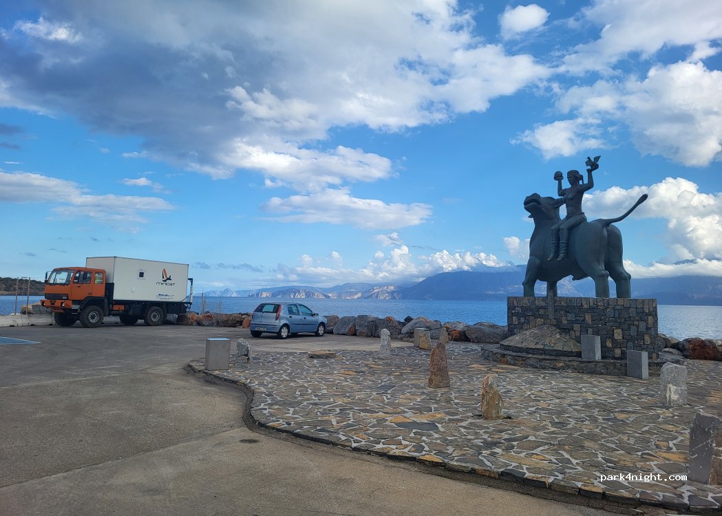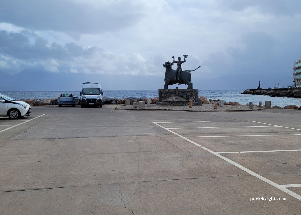Deux belles nuits certes mouvementées par le vent mais en toute sécurité. Parking proche de la ville et du marché le mercredi. Merci Agios Nicholaos :-)!