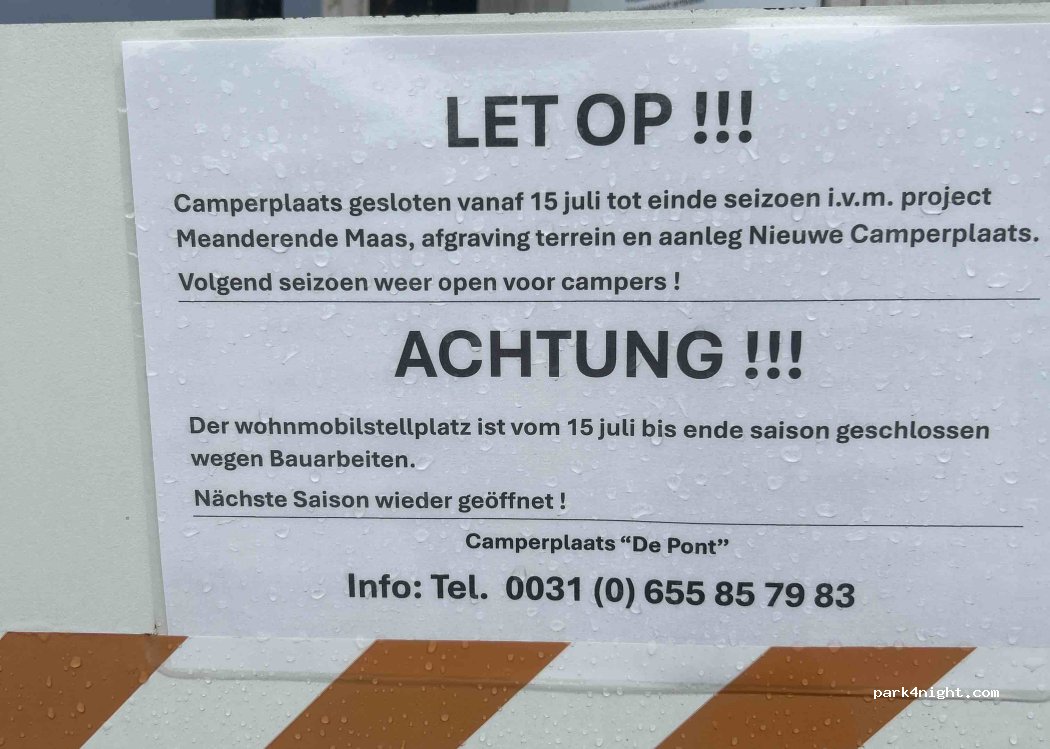 De parkeerplaats is gesloten van 15 juli 2025 tot het einde van het seizoen vanwege bouwwerkzaamheden!