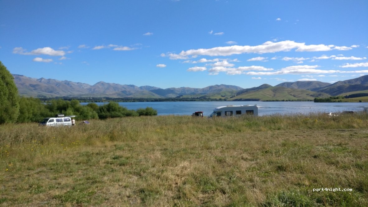 Wunderschönes Campervan-Gelände am Ufer des Opuha-Sees mit freiem Blick auf die Berge. Spültoiletten und Waschbecken vorhanden. Großer Platz mit Gras und ein paar Bäumen. Maximal 2 Nächte hintereinander