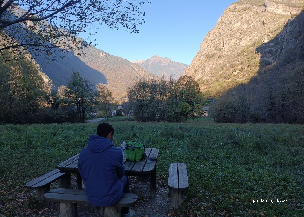 Perfect spot for a quiet night or two in the designated parking space for the via ferrata activity in this village. Close enough to the village and road to not feel too secluded, yet far enough to be out of people’s way. A very well maintained public toilet in the village 5 mins walk from the spot, and a water fountain in the playground.