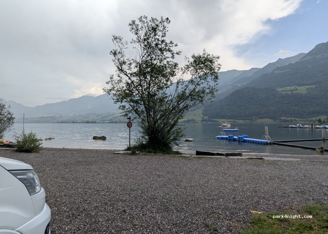 schöner überschaubarer Platz am Seeufer, Sanitär modern und sauber, Restaurant Bar lecker und für die Schweiz preiswert. Bahnlinie auf der anderen Seeseite hörbar, Seebagger leider auch vormittags hörbar