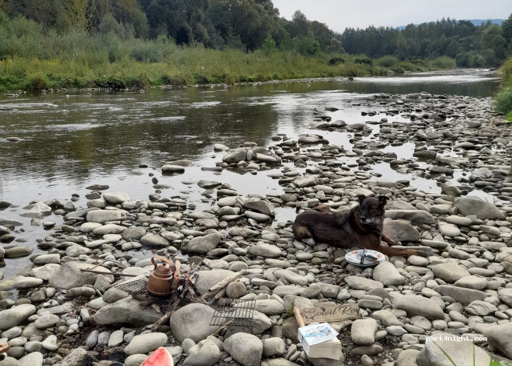 Parking leśny nad rzeką Koszarawą za mostkiem po lewej stronie spokojna deszczowa nocka miejsce utwardzone w dzień dość oblegane początek ścieżek dydaktycznych fajne miejsce do przenocowania w dalszej podróży