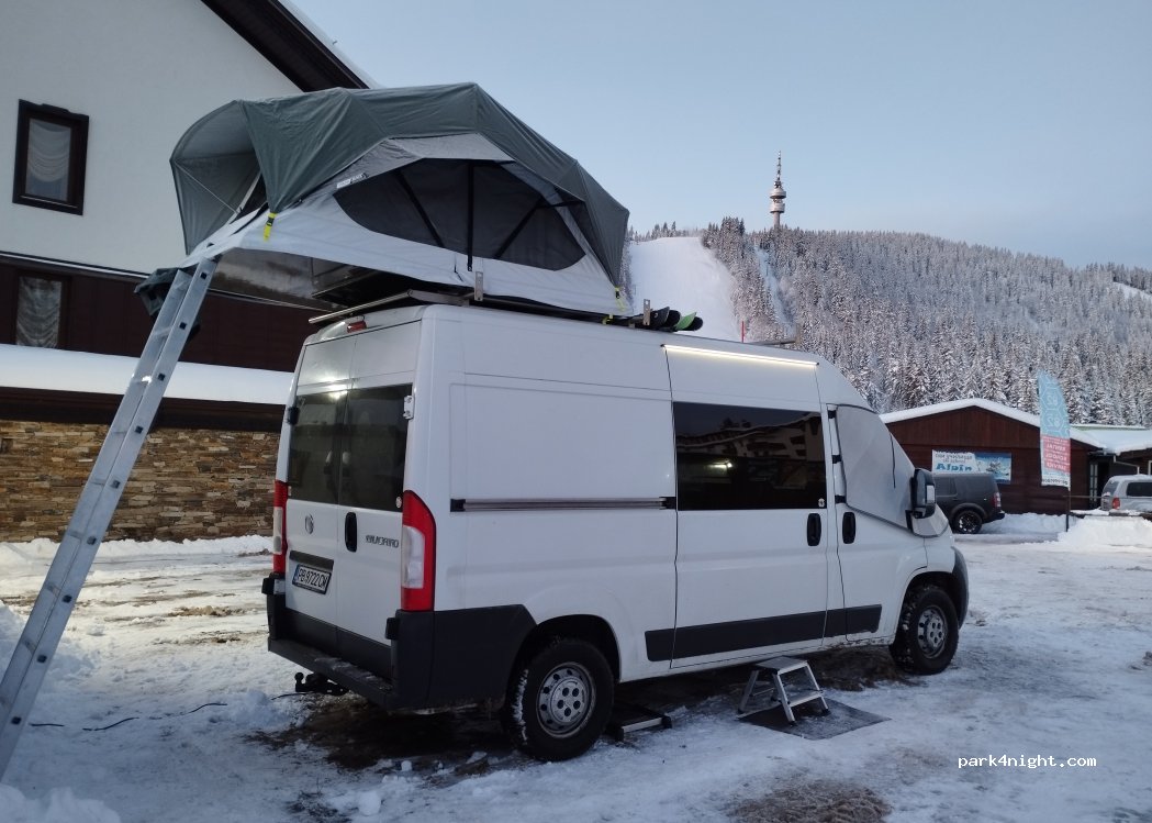 Супер място за любители на зимните спортове. Много близо до ски пистите и лифтовете. Може да се наемат директно от паркинга ски или сноуборд. Има вода, тоалетна, сауна. 60лв. е нощувката на кемпер и в Неделя може да седиш до 15-16ч.