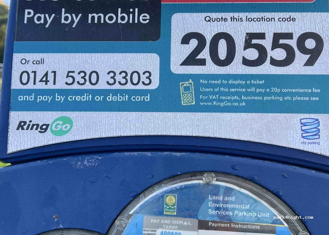 Best stop over in Glasgow. very large, flat car park. Good lighting & cctv. £2 per hour between 08.00 - 18.00 and flat fee of £3 overnight. Stayed 1 night ( Friday 7th April). No issues. very safe. Road noise from main road from early, but nothing the earbuds didn't block out. Bus stop on site into town. we grabbed an Uber without any worries